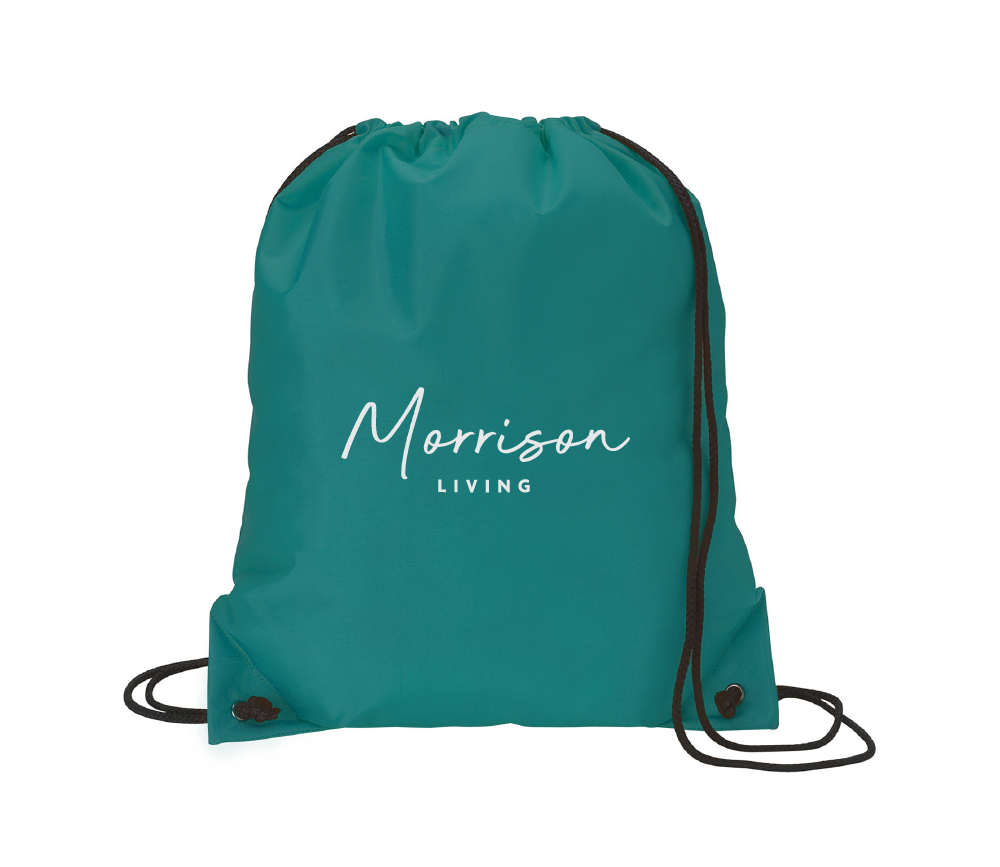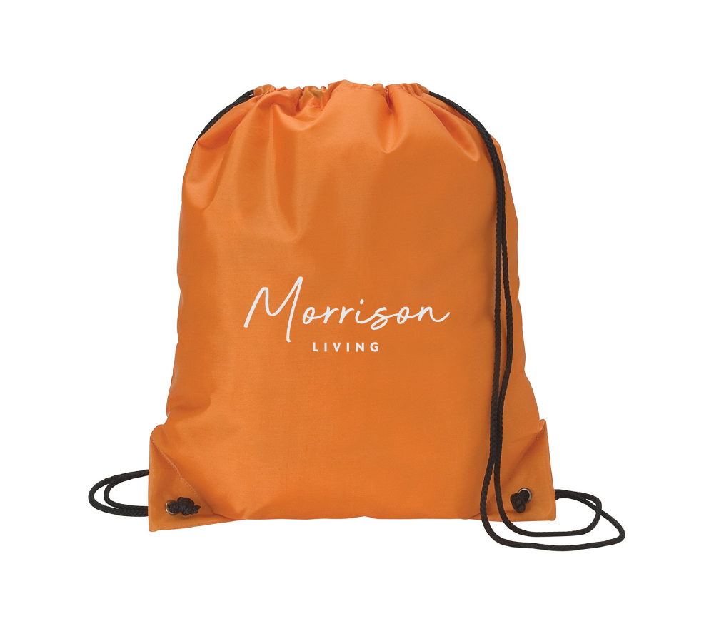 sku: MORR-41Drawstring backpack with reinforced corners. Dimensions: 14W x 16.5H. Made with 210D polyester. Includes 1 color imprint.